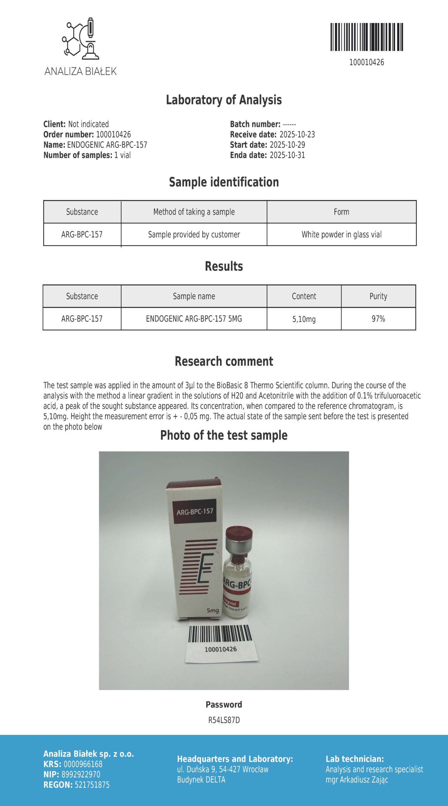 PRODUKT ARG-BPC-157 spray PRZEZNACZONY DO CELÓW BADAWCZYCH !