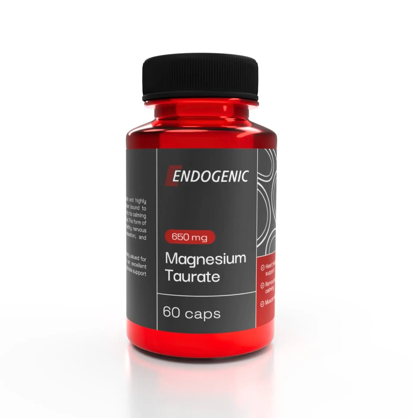 Endogenic Magnesium Taurate 650 mg to taurynian magnezu — chelatowa forma o wysokiej biodostępności, łącząca magnez z tauryną. Wspiera prawidłową pracę mięśni, układu nerwowego i serca, bez efektu przeczyszczającego typowego dla tańszych form magnezu.
