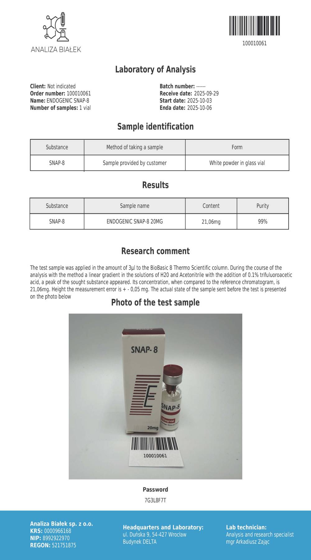 SNAP product has been carefully tested for safety. This ingredient is commonly used in the cosmetics industry and does not cause significant side effects. However, like with any cosmetic product, individual allergic reactions may occur. It is recommended to perform a patch test on a small area of skin before first use.