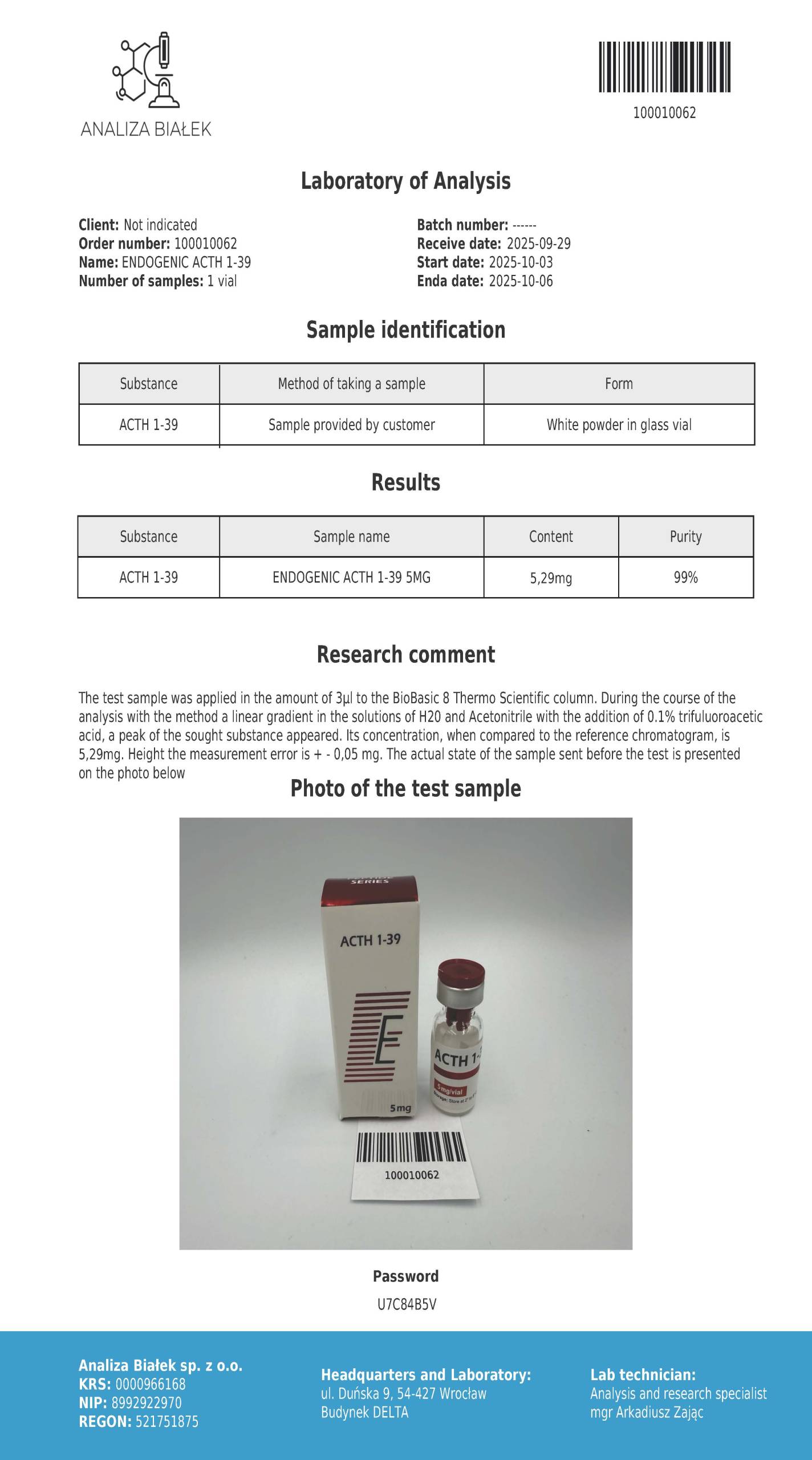 The ACTH 1-39 peptide consists of 39 amino acids and is a derivative of the larger precursor protein, pro-opiomelanocortin (POMC). This peptide is essential for regulating cortisol and other glucocorticoids, which are crucial for maintaining homeostasis and the stress response. Its structure allows it to bind to melanocortin receptors, primarily located in the adrenal cortex, to exert its effects.