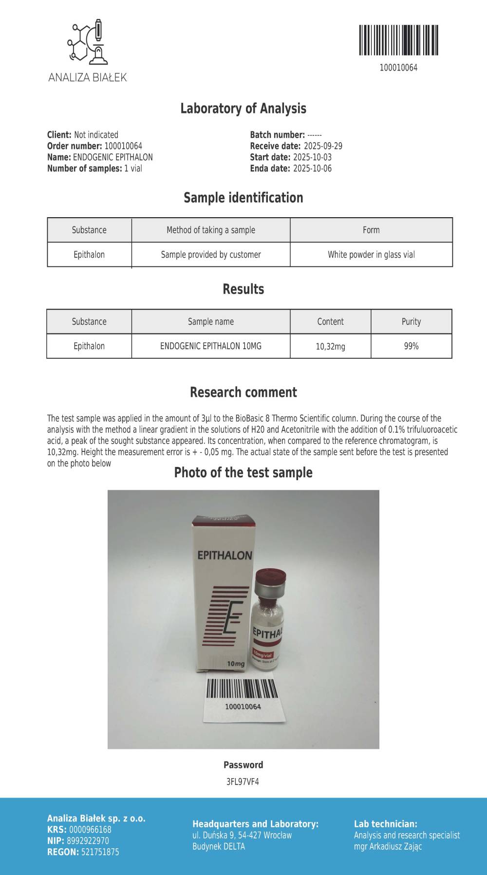 Epithalon 10 mg