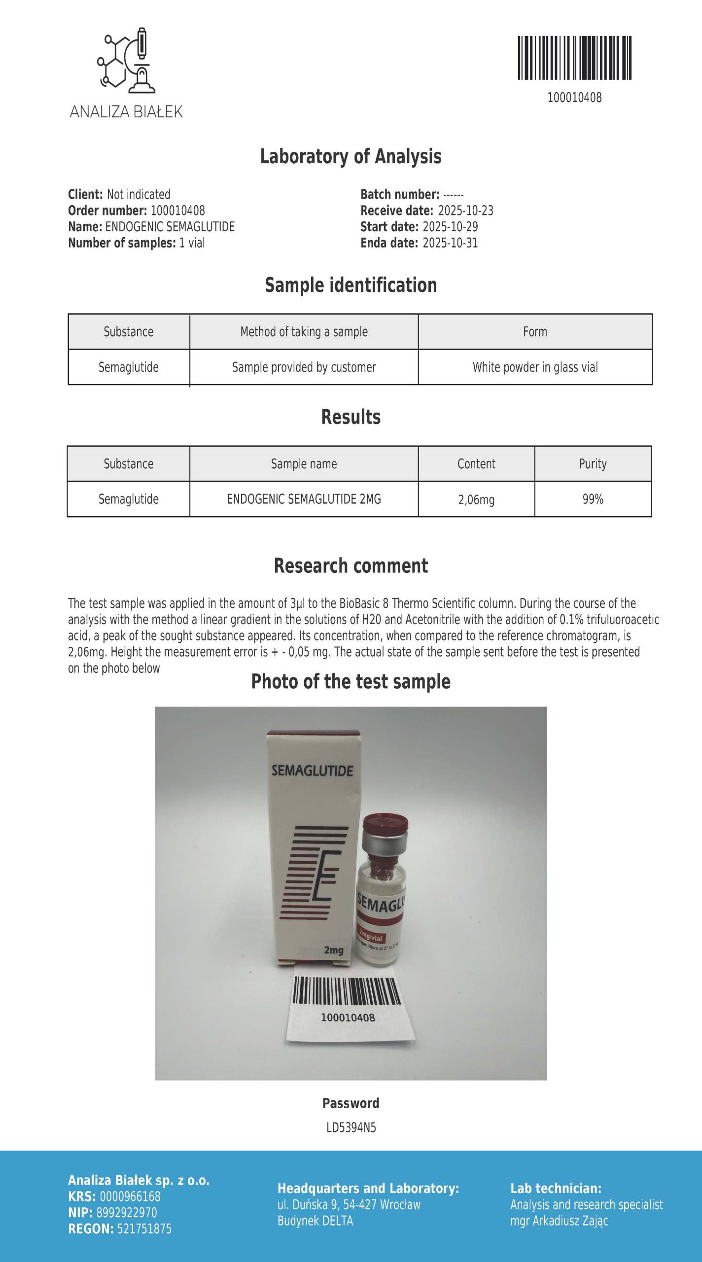 All the above-mentioned properties are observed in laboratory tests, not performed on humans, they are for information purposes only. All information contained in the descriptions has not been approved by GIS, GIF or EFSA. The substance is not a medicine, food product or dietary supplement and is therefore not suitable for human consumption. The product qualifies as a chemical reagent/reference material authorized for marketing in the EU. It can only be used for scientific research. Other information about the agent is included in the safety data sheet for the chemical substance, which we make available for viewing. Products are only available to institutions lor private persons who are associated with research or laboratory activities.